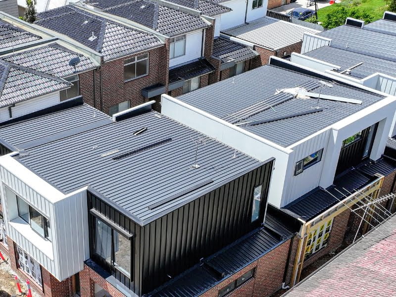 4 units wrapped in Night Sky and Surfmist Colorbond Nailstrip, create a contrasting look which stands out and adds to the overall appeal of this property in Gilbert Road.